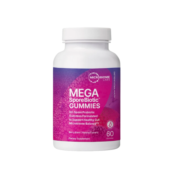 MegaSporeBiotic Gummies by Microbiome Labs deliver a 100% spore-based probiotic blend in a tasty berry flavor. Formulated for adults, these gummies help promote a diverse gut microbiome, support gut barrier integrity, and strengthen immune function — all in a convenient, enjoyable format for daily gut health support.